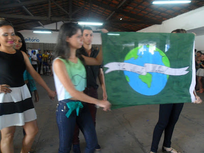 Apresentação da bandeira com tema '' Um mundo Melhor''